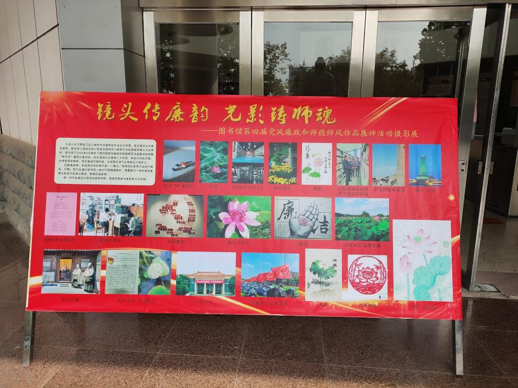为深入学习贯彻习近平新时代中国特色社会主义思想,加强廉洁文化建设,弘扬教育家精神,筑牢廉洁思想防线,深入贯彻中央八项规定精神学习教育,图书馆开展了第四届党风廉政建设和师德师风作品展评活动。