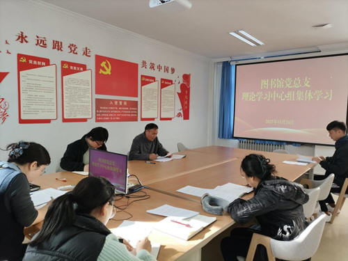 2025年11月26日上午,图书馆党总支理论学习中心组在4006室开展集体学习,共同学习习近平总书记在主持中共中央政治局第二十一次集体学习时的重要讲话精神。党总支书记李振清领学并主持,中心组成员参加学习。