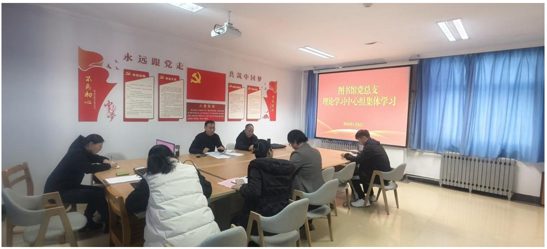 2026年1月6日上午,图书馆党总支理论学习中心组在4006室开展2026年首次集体学习,中心组深入学习了《求是》杂志2026年第1期发表的习近平总书记重要文章《学习好贯彻好党的二十届四中全会精神》。李振清主持会议并作交流发言,其他与会同志进行了书面交流。
